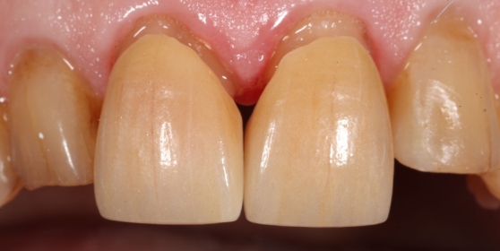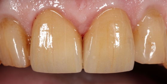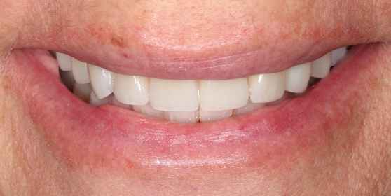 This older patient needed new front teeth without a complete makeover. The crowns were precisely matched to his natural shade and shape, so they look identical to the adjacent teeth.